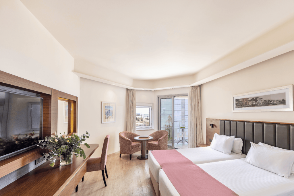 (макс. 3 чел., 27 м2); С видом на море. Оснащены двуспальной или двумя односпальными кроватями, современной ванной комнатой, кондиционером, мини-баром, сейфом и бесплатным Wi-Fi. Подходят для размещения до 2 взрослых с возможностью дополнительного места для ребёнка.