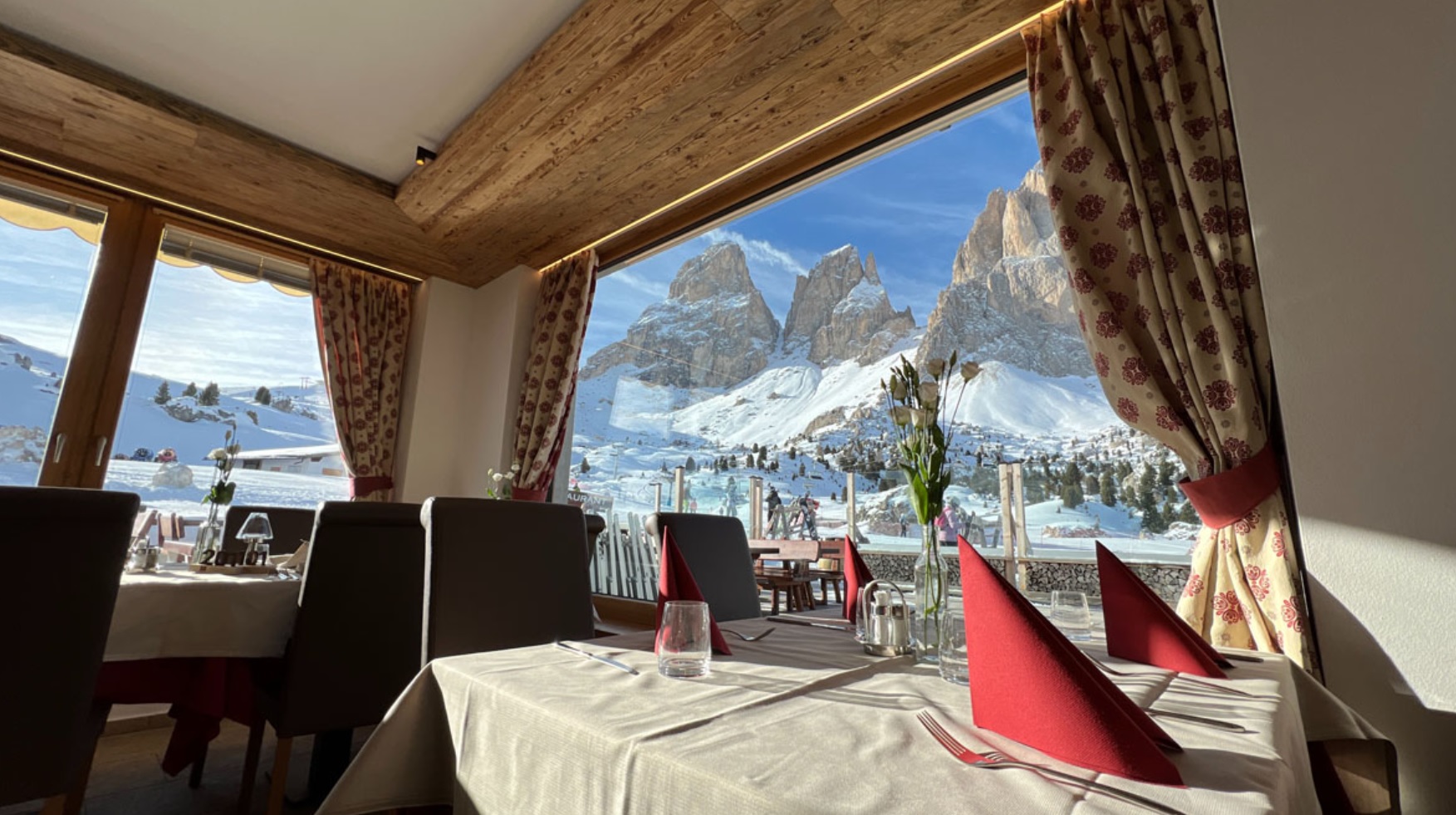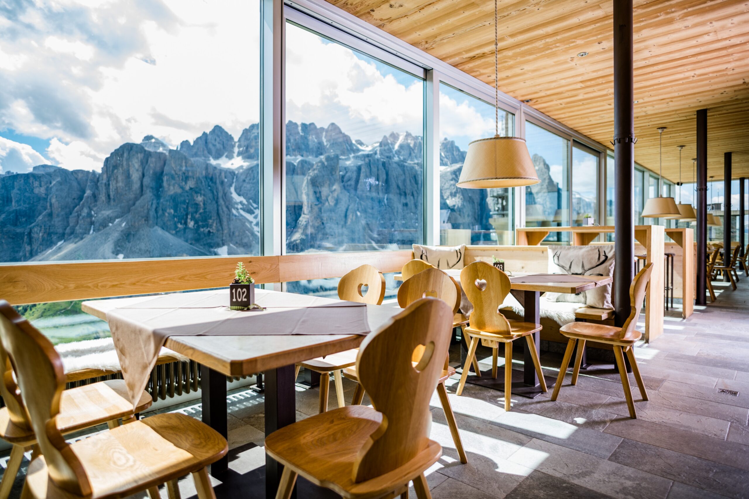 Панорамний ресторан на вершині перевалу Дантерчеп’єс із захопливими краєвидами Доломітів. Dantercepies поєднує альпійську кухню з італійською класикою: паста, гриль, регіональні страви та вина. Ідеальне місце для обіду під час катання або гірських прогулянок.